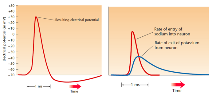 After an action potential, a neuron has a refractory period during which time the neuron resists the production of another action potential