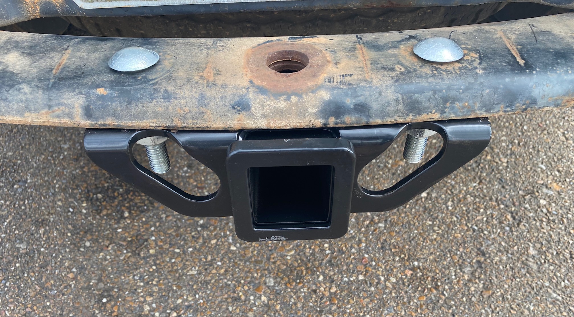 Here is the receiver hitch I bought, installed (I have since painted the bumper, so it looks much nicer :-)