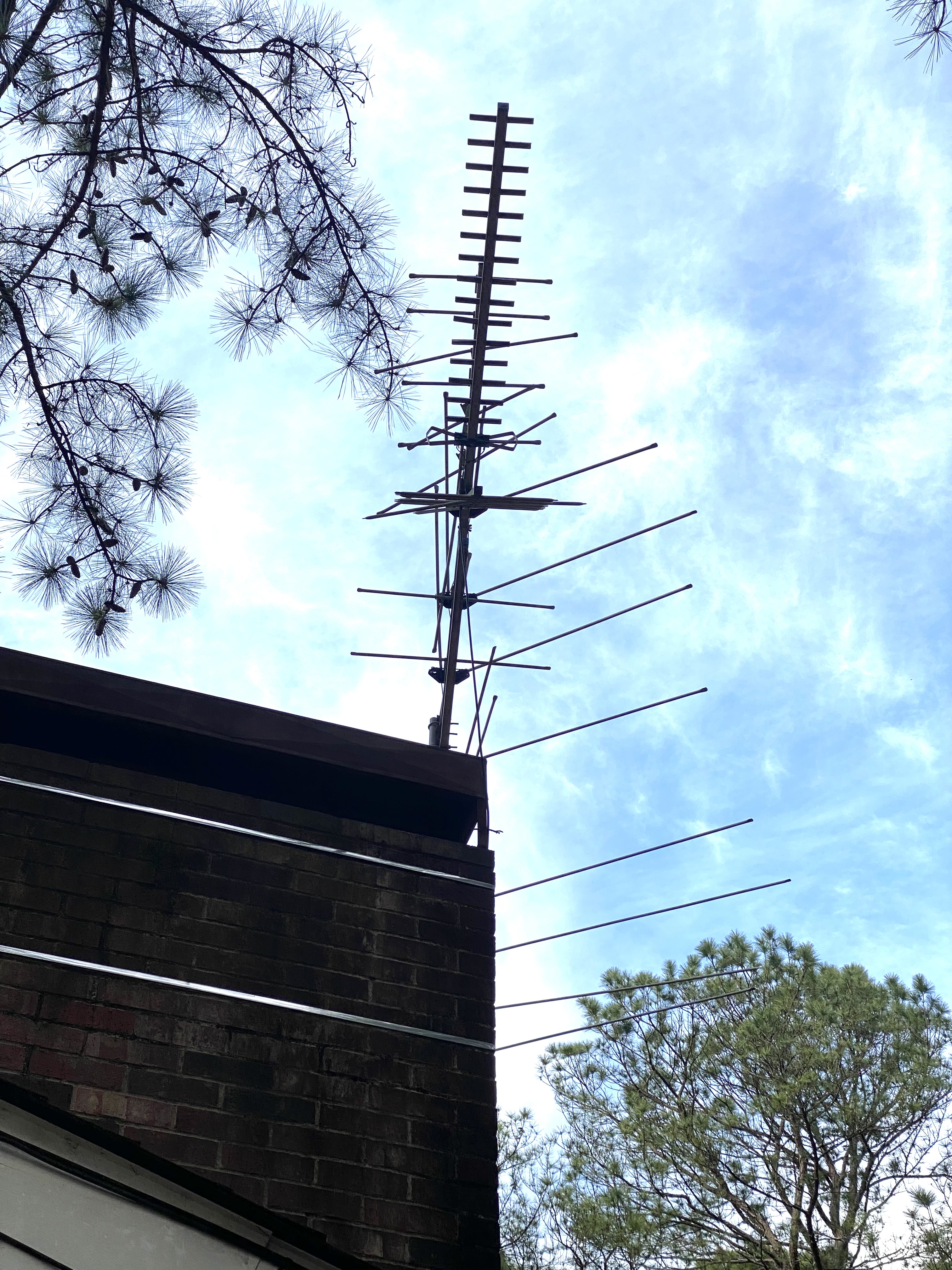 - Below is a photo of the external antenna my son and I installed early in the 21st century. It is pointed toward Shreveport, fyi. We do not use it any more.