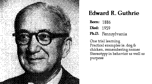 Guthrie was an early behaviorist who taught that learning occurred in one trial