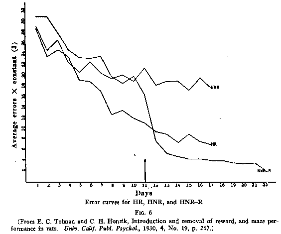 Pigeon pecking a key in order to obtain grain, or avoidance of location in which a predator had been previously encountered. |