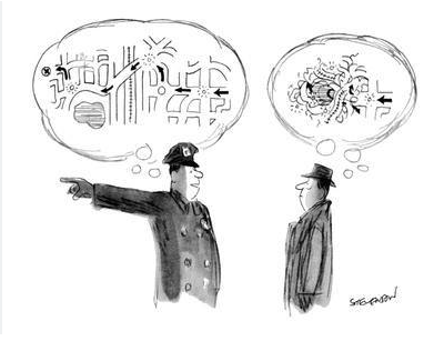- The policeman’s map is very clear while the tourist’s is not.